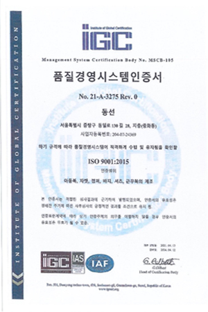품질경영시스템 인증서