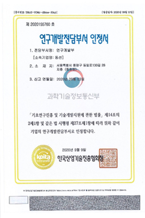 연구개발전담부서 인정서
